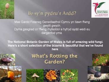 The National Botanic Garden of Wales is full of amazing wild fungi. ... Ergot poisoning, often of wheat or rye, can produce some horrible physical conditions, ... – PowerPoint PPT presentation