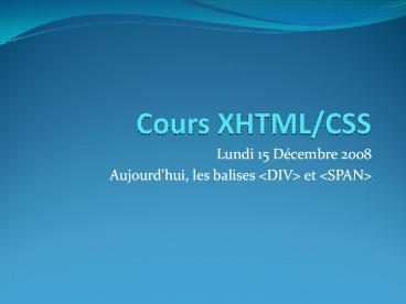 <Notice: Removed> Cours XHTML/CSS PowerPoint PPT Presentation