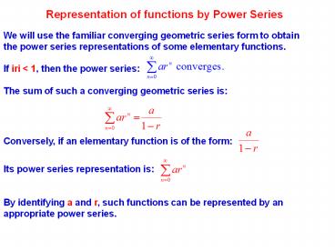 1Representation of functions by Power Series