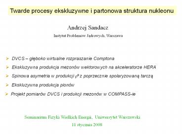 Title: Twarde procesy ekskluzywne i partonowa struktura nukleonu