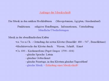 - gleiche Musik gt Erfindung einer Musikschrift!