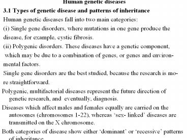 - 3.1 Types of genetic disease and patterns of