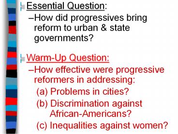 - How did progressives bring reform to urban