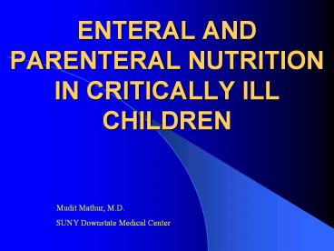 Title: ENTERAL AND PARENTERAL NUTRITION IN CRITICALLY ILL CHILDREN