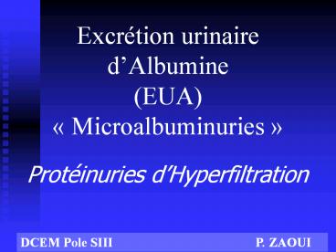 1Excrétion urinaire dAlbumine(EUA)
