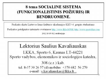 <Notice: Removed> 8 tema SOCIALINE SISTEMA (FUNKCIONALISTINIS PO PowerPoint PPT Presentation