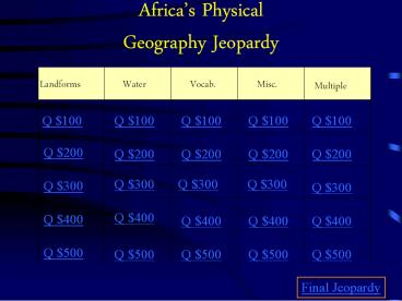 1Africas Physical Geography Jeopardy