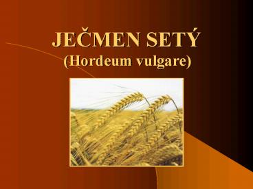 • Jecmen je duležitou sladovnickou, krmnou,