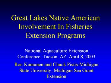 <Notice: Removed> Great Lakes Native American Involvement In Fisheries Extension Programs PowerPoint PPT Presentation