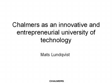 <Notice: Removed> Chalmers as an innovative and entrepreneurial university of technology PowerPoint PPT Presentation