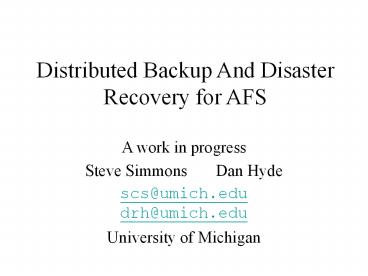 Distributed Backup And Disaster Recovery for AFS PowerPoint PPT Presentation