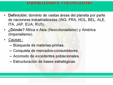 FRA, HOL, BEL, ALE, ITA, JAP, EUA, RUS). - Dónde? África e Asia (Neocolonialismo) y América