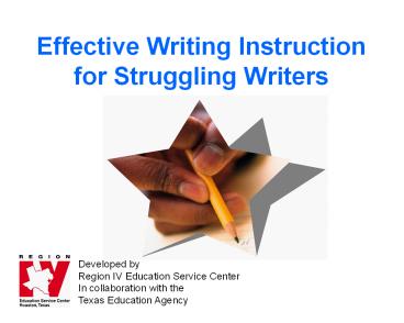 Continual monitoring of student progress Specific instruction and strategies to meet the needs of the struggling writer