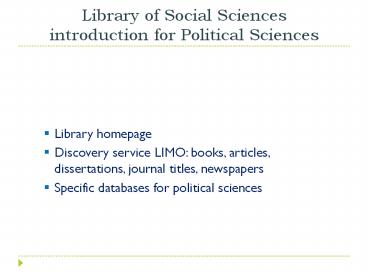 Title: Library of Social Sciences introduction for Political Sciences
