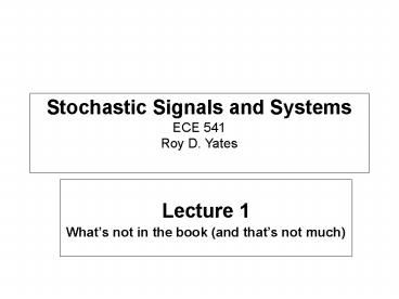 Title: Stochastic Signals and Systems ECE 541 Roy D. Yates