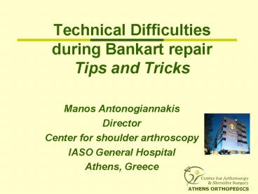 Title: Technical Difficulties during Bankart repair Tips and Tricks