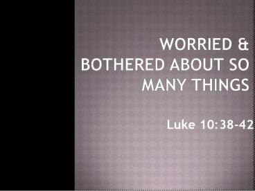 bothered about so many things. Luke 1038-42