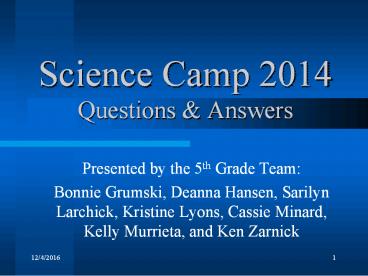<Notice: Removed> Science Camp 2014 Questions PowerPoint PPT Presentation