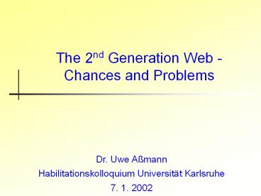 1The 2nd Generation Web - Chances and Problems