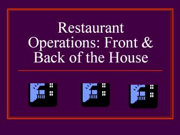 <Notice: Removed> Restaurant Operations: Front PowerPoint PPT Presentation