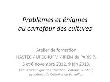 • HASTEC / UPEC-IUFM / IREM de PARIS 7,