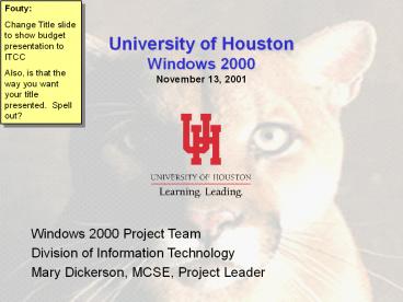 Title: University of Houston Windows 2000 November 13, 2001