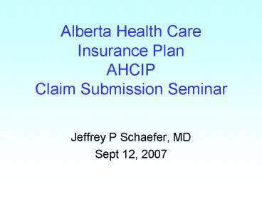 Title: Alberta Health Care Insurance Plan AHCIP Claim Submission Seminar