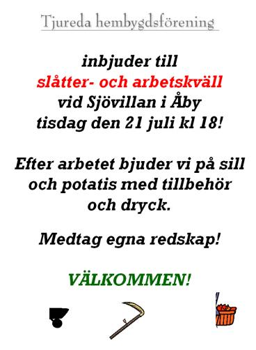 Sjövillan i Åbytisdag den 21 juli kl 18!Efter