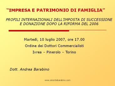 IMPRESA E PATRIMONIO DI FAMIGLIA