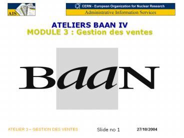 <Notice: Removed> ATELIERS%20BAAN%20IV%20MODULE%203%20:%20Gestion%20des%20ventes PowerPoint PPT Presentation