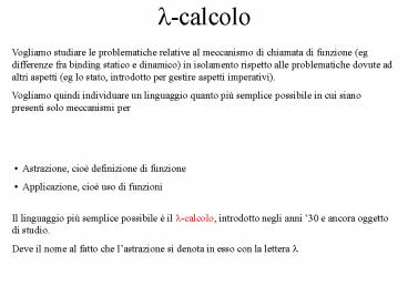 - Astrazione, cioè definizione di funzione