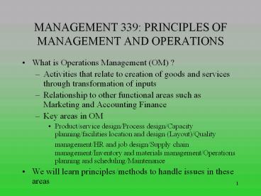 <Notice: Removed> MANAGEMENT 339: PRINCIPLES OF MANAGEMENT AND OPERATIONS PowerPoint PPT Presentation