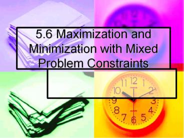 <Notice: Removed> 5.6 Maximization and Minimization with Mixed Problem Constraints PowerPoint PPT Presentation