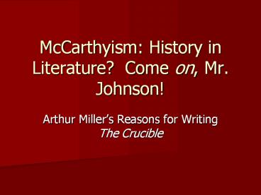 McCarthyism: History in Literature? Come on, Mr. Johnson! PowerPoint PPT Presentation