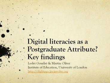Digital literacies as a Postgraduate Attribute? Key findings PowerPoint PPT Presentation