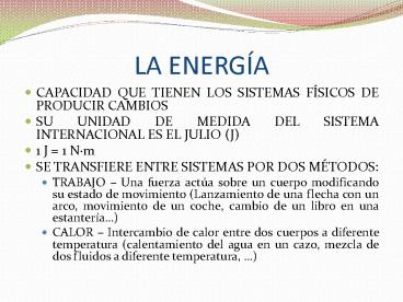 • ES UNA FORMA DE TRANSFERIR ENERGÍA DE UN CUERPO A