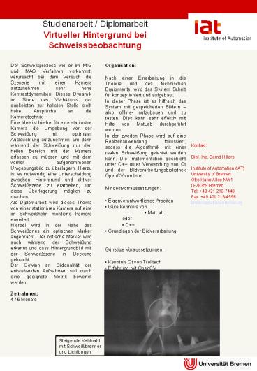 - Virtueller Hintergrund bei Schweissbeobachtung