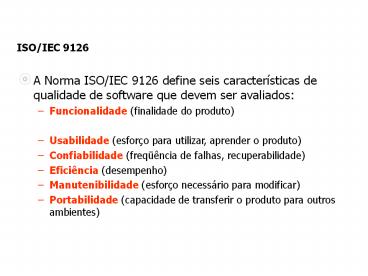 Subcaracterísticas e Métricas - Cada característica é refinada em um conjunto de