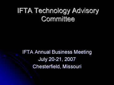 <Notice: Removed> IFTA Technology Advisory Committee PowerPoint PPT Presentation