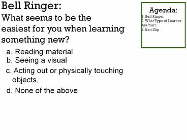 Agenda 1. Bell Ringer 2. What Type of Learner
