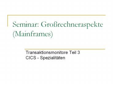 8Seminar Großrechneraspekte (Mainframes) 2. CICS