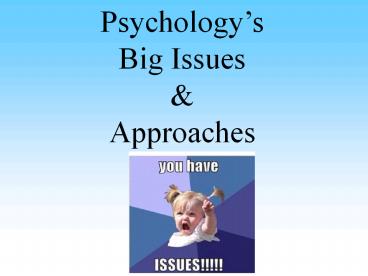 1Psychologys Big Issues Approaches