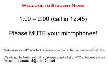 - Our next VTC will be Thursday, Oct 21, 2010.