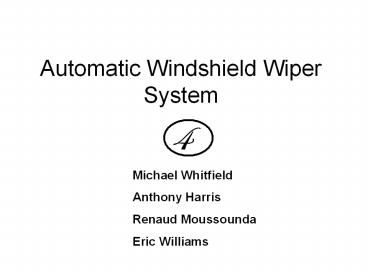 <Notice: Removed> Automatic Windshield Wiper System PowerPoint PPT Presentation