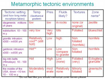 Metamorphic tectonic environments PowerPoint PPT Presentation