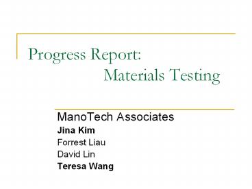 <Notice: Removed> Progress Report: Materials Testing PowerPoint PPT Presentation