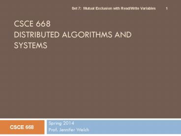 <Notice: Removed> CSCE 668 DISTRIBUTED ALGORITHMS AND SYSTEMS PowerPoint PPT Presentation
