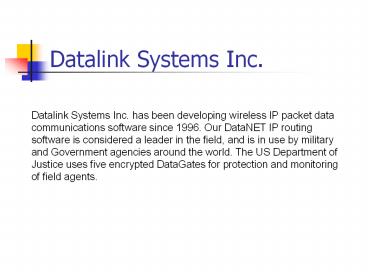 <Notice: Removed> Datalink Systems Inc. PowerPoint PPT Presentation