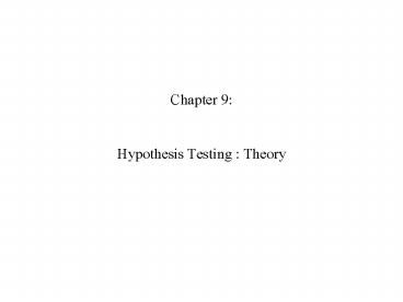 <Notice: Removed> Chapter 9: Hypothesis Testing : Theory PowerPoint PPT Presentation