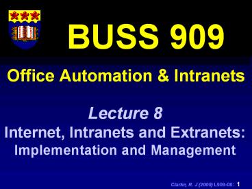 Lecture 8 Internet, Intranets and Extranets
